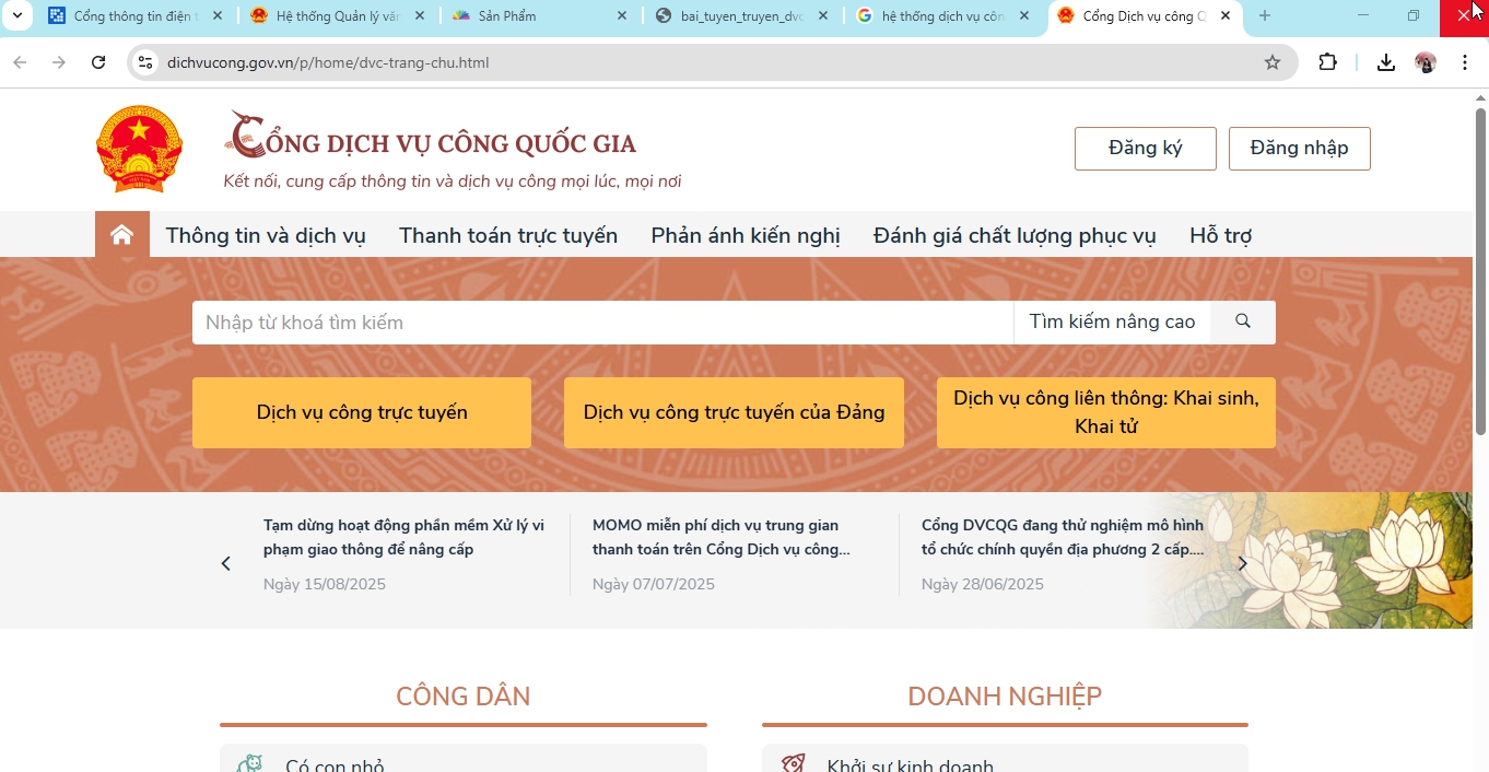 Tương tự, tổ chức, cá nhân cũng có thể truy cập vào địa chỉ Cổng dịch vụ công quốc gia để đăng ký, đăng nhập tài khoản và thực hiện xác thực điện tử người dùng tại địa chỉ: http://dichvucong.gov.vn hoặc có thể đăng nhập bằng tài khoản định danh điện tử (VNeID).